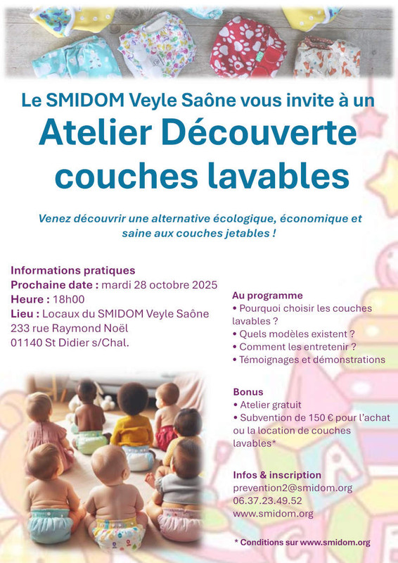 AccueilAtelier Découverte couches lavables par le SMIDOM Veyle Saône