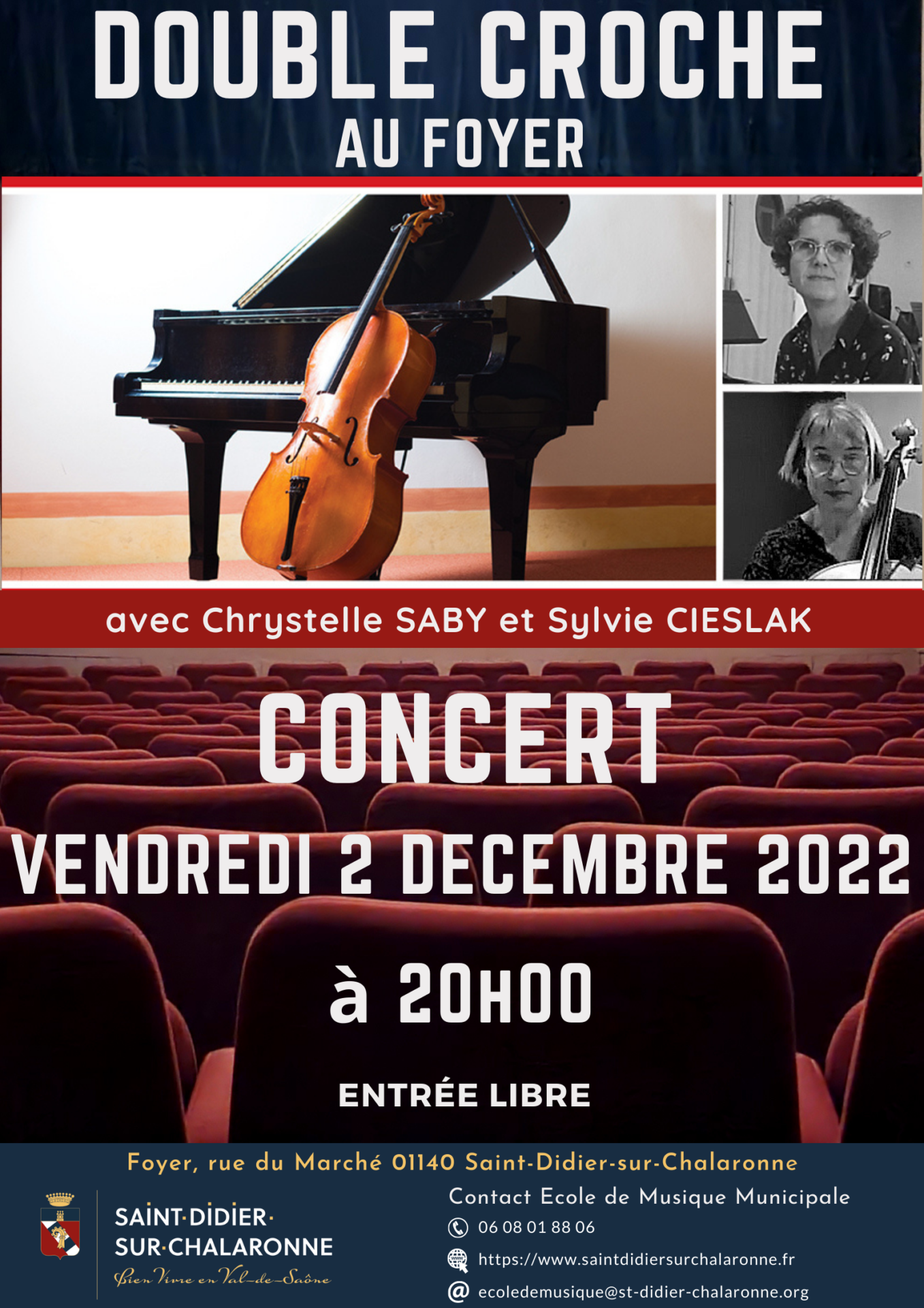 La municipalité vous invite à un concert gratuit le vendredi 2 décembre 2022 à 20h00 au Foyer.