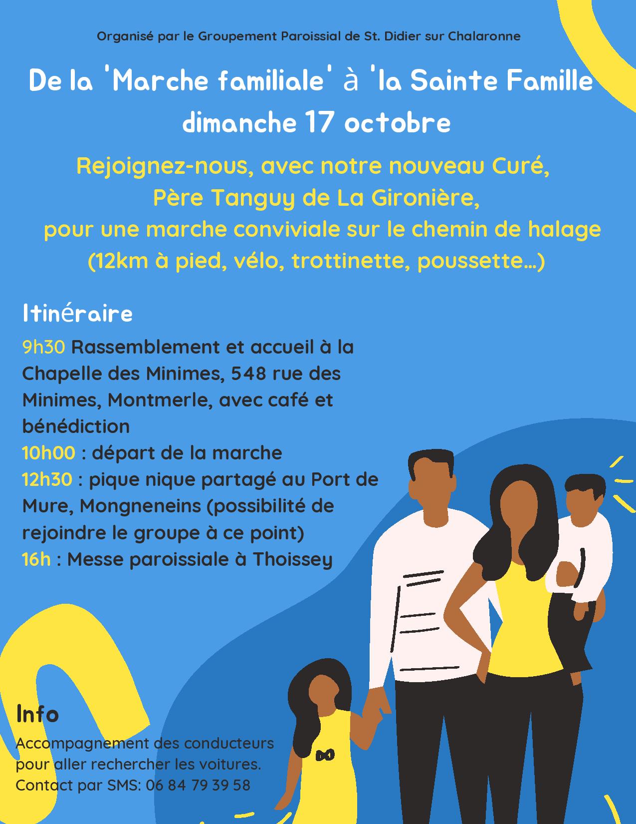 L’association Conseil Paroissial organise une Marche en Famille le long du chemin de halage, qui débute à 9h30 à la Chapelle des Minimes à Montmerle et se termine à 16h par une messe à l’église de Thoissey (avec pique-nique).