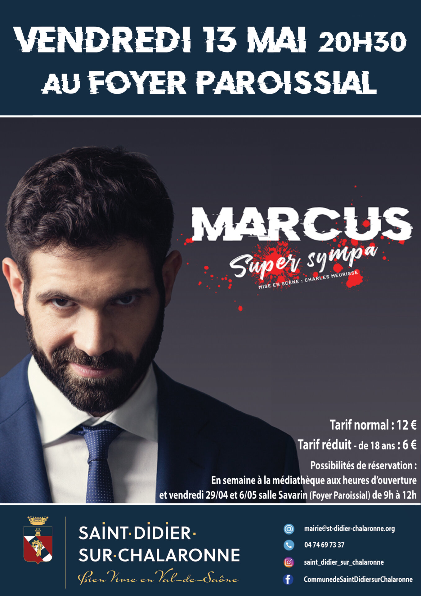 Pour la 1ère fois, la municipalité de Saint-Didier vous propose un évènement culturel exceptionnel : le One-man-show de l’humoriste Marcus Super Sympa, vendredi 1️⃣3️⃣ mai à 20h30 au Théâtre du Foyer Paroissial !! Ne le manquez pas ! 🤩
