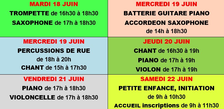 L’école de musique municipale vous accueille dans ses locaux situés au Centre Culturel, Place de la Culture, rue des Huguets, du lundi 18 au samedi 22 juin.