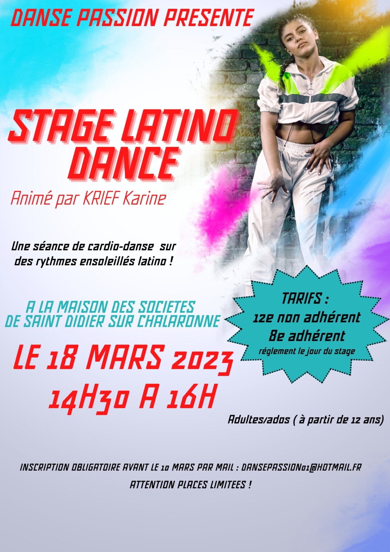 Stage Latino Dance de 14h30 à 16h00 à la maison des sociétés de Saint Didier sur Chalaronne.
