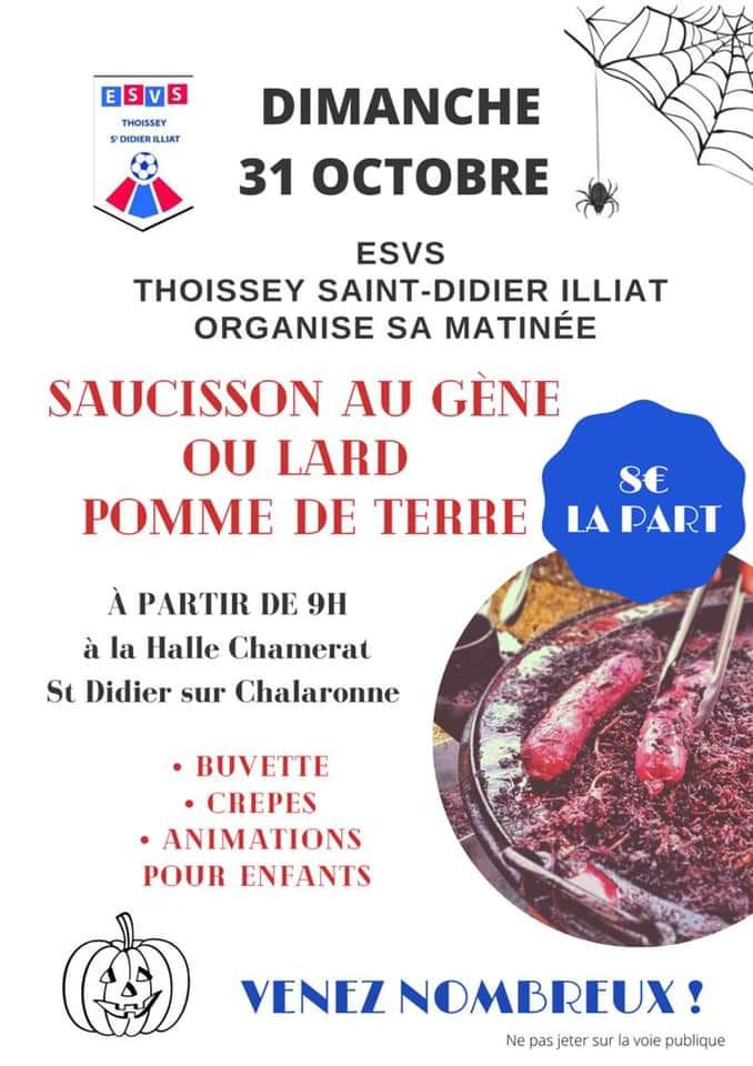 L’association Foot ESVS TSDI organise sa matinée de vente de saucisson au gène ou lard pomme de terre (8€ la part).